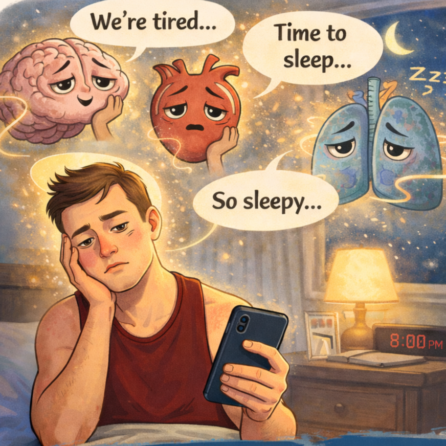 If your brain is shutting down at 8 pm and you’re forcing yourself to stay up because “it’s too early,” that’s counterproductive. Sleep is driven by a mix of sleep pressure and your circadian rhythm, and when those line up, there’s a real window where falling asleep is easier (Borbély, 1982). Miss that window and you often get a second wind, driven by alerting signals from your circadian system, which can leave you wired for hours even though you’re clearly tired (Dijk & Czeisler, 1995). This happens more often after heavy training weeks or mentally demanding stretches, when recovery needs are higher.