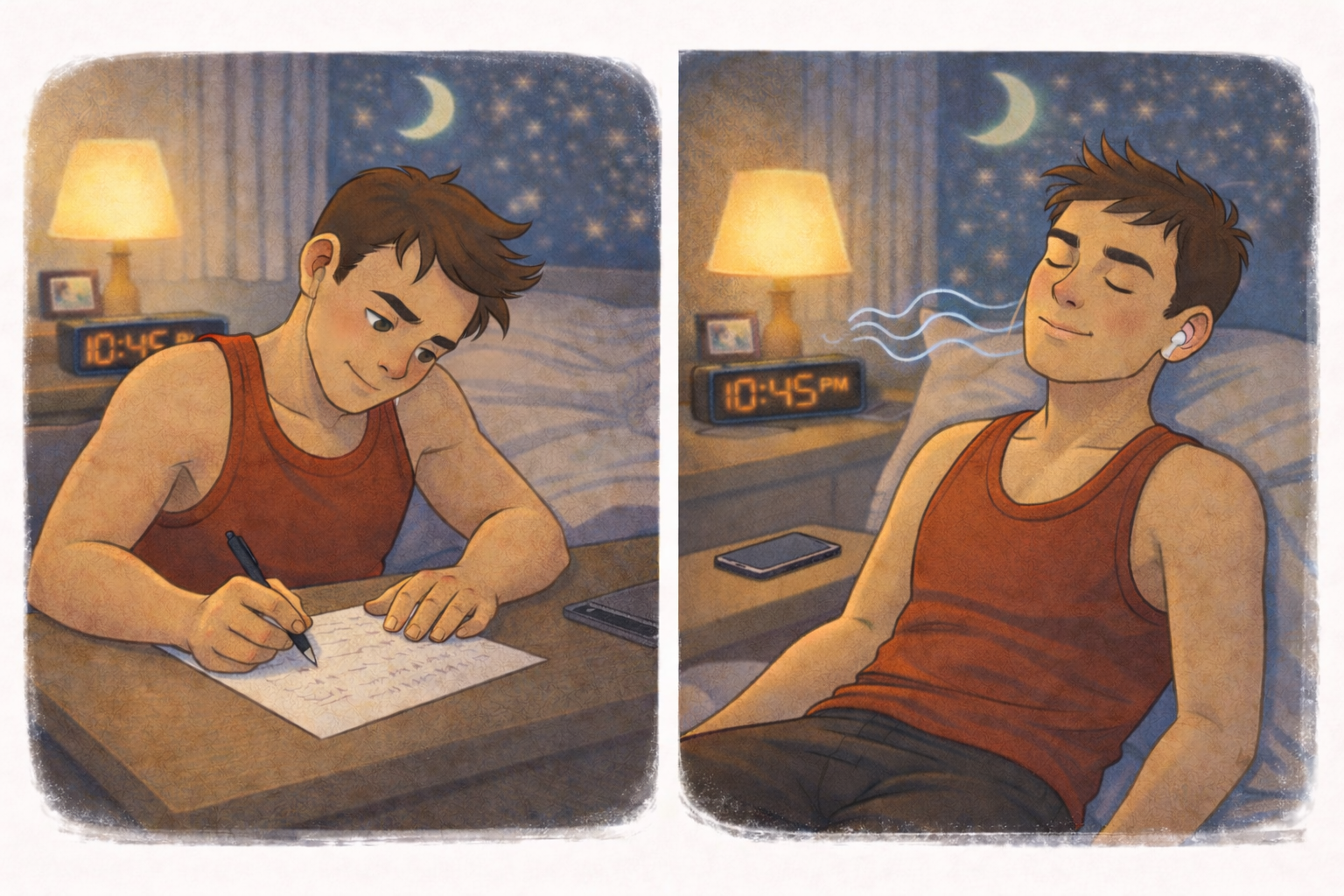 Pick three things you are grateful for that day. Do not overthink it. No, it does not need to change every night. The goal is to pull your brain away from problem solving and threat scanning, and into something calmer.